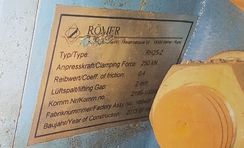 In der Bildergalerie wird eine Caliper Sicherheitsscheibenbremse aufgezeigt, welche NICHT von Römer aus Deutschland produziert wurde. Fälschung: Typ RH25-2. Original: Typ SCFH